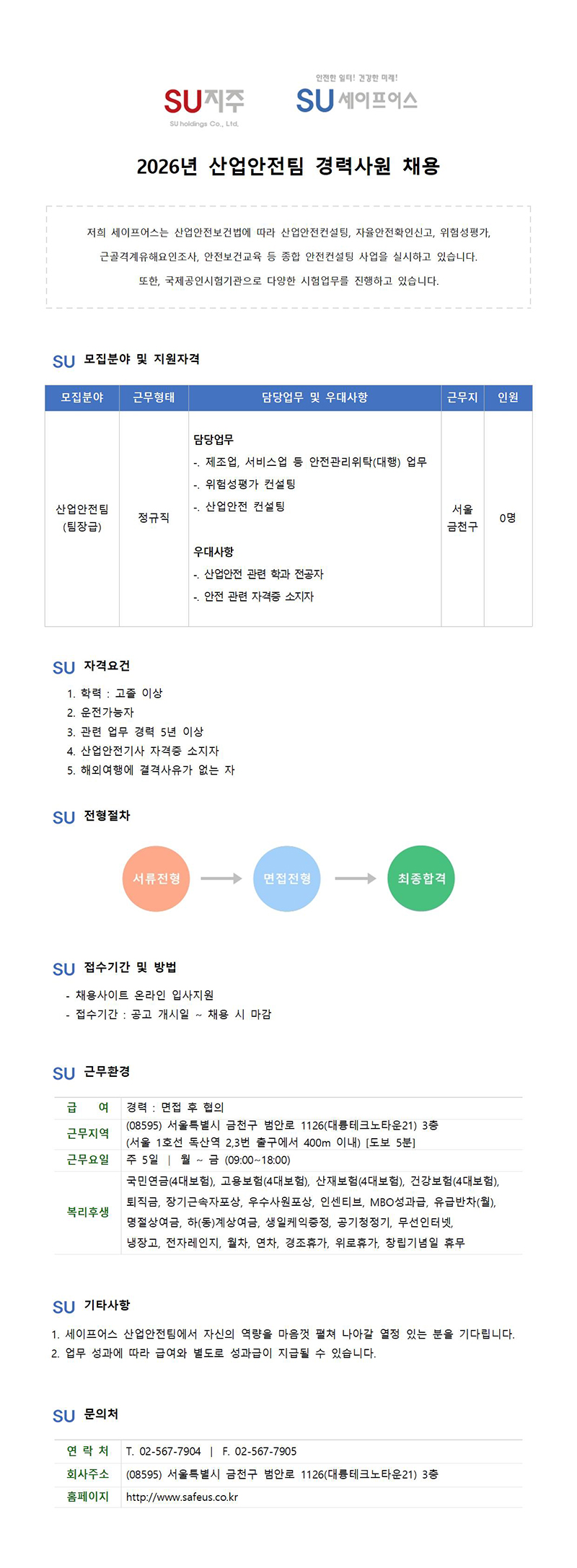 [2026] 산업안전팀 경력직 팀장급 채용